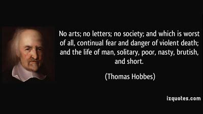 Tapi selain Freud, seorang filsuf Inggris, Thomas Hobbes juga memiliki pandangan yang serupa. Ia mendeskripsikan manusia sebagai sosok yang hidupnya suka “menyendiri, kasihan, mengerikan, kasar, dan berhidup pendek.” Ia percaya bahwa semua manusia dapat membunuh sesamanya, dan jika ada 2 orang yang menginginkan hal yang sama, perperangan akan terjadi. Seorang filsuf Cina, Xunzi, juga menyetujui hal itu dengan mengatakan bahwa: “Sifat dasar manusia itu jahat, dan kebaikan hanya terjadi karena adanya keinginan tersembunyi.“